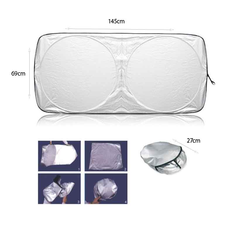 Η ηλιοπροστασία παρμπρίζ αυτοκινήτου είναι ιδανική για να προστατεύει το εσωτερικό του οχήματος από την άμεση ηλιακή ακτινοβολία. Το μέγεθος της είναι 150×70 εκατοστά, προσφέροντας επαρκή κάλυψη για τα περισσότερα οχήματα.