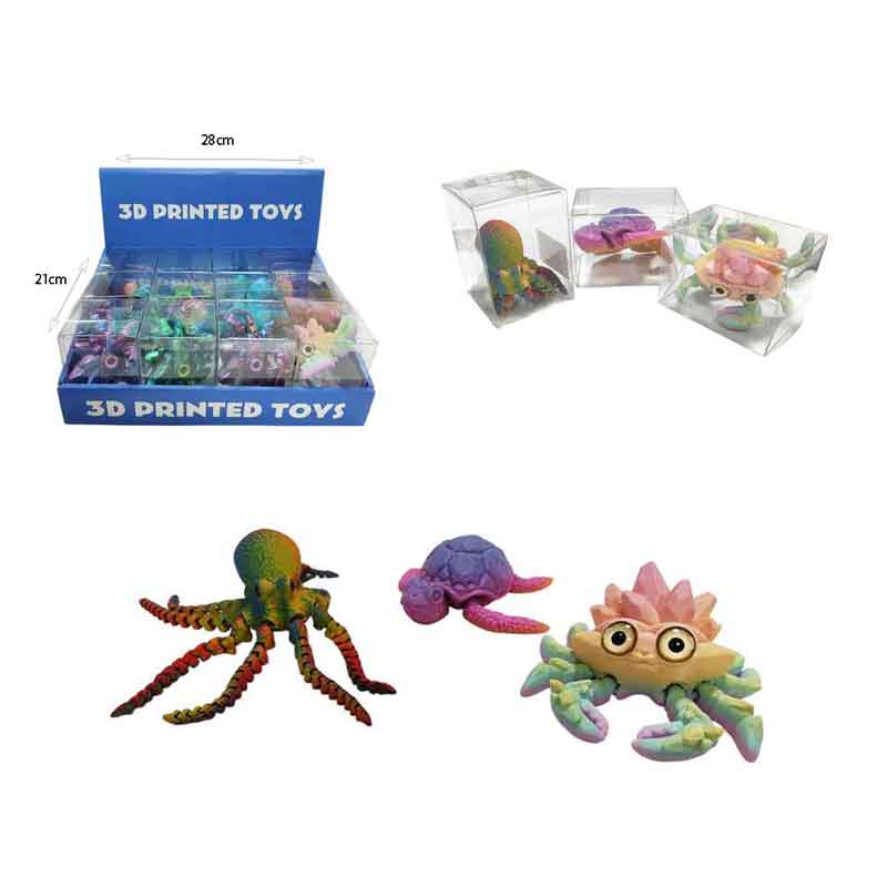 Διασκεδαστικά 3D printed παιχνίδια σε σχέδια θαλάσσιων ζώων όπως χταπόδι, καβούρι και χελώνα.