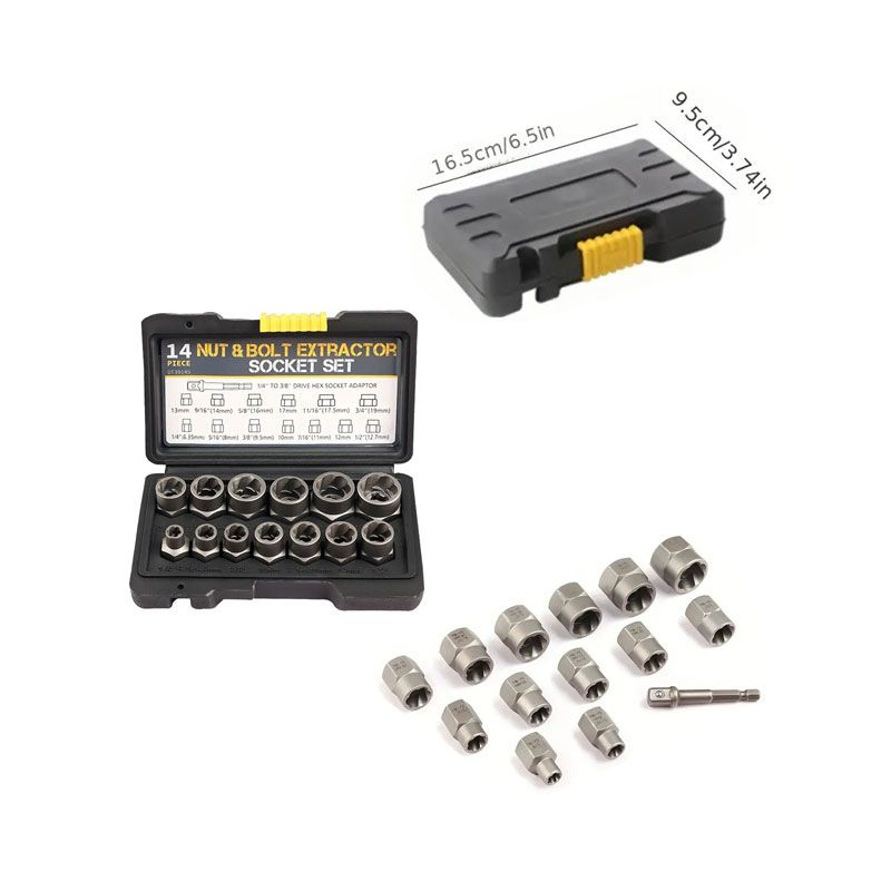 Σετ καρυδάκια παξιμαδιών και μπουλονιών με αντάπτορα 14τεμ – Nut & Bolt Extractor Sockt Set