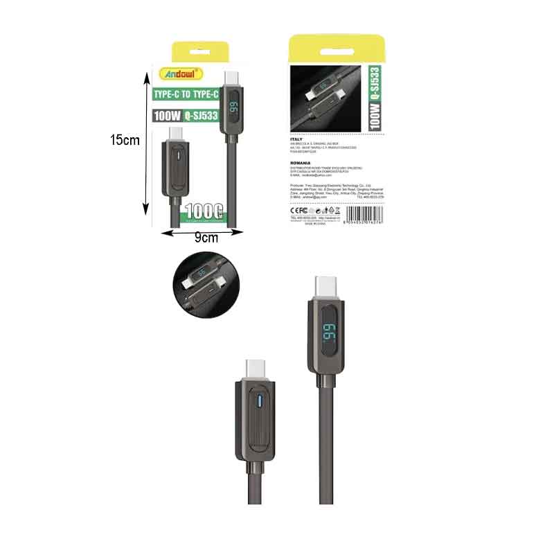 Καλώδιο Type-C to Type-C 100W Andowl Q-SJ533 μαύρο
