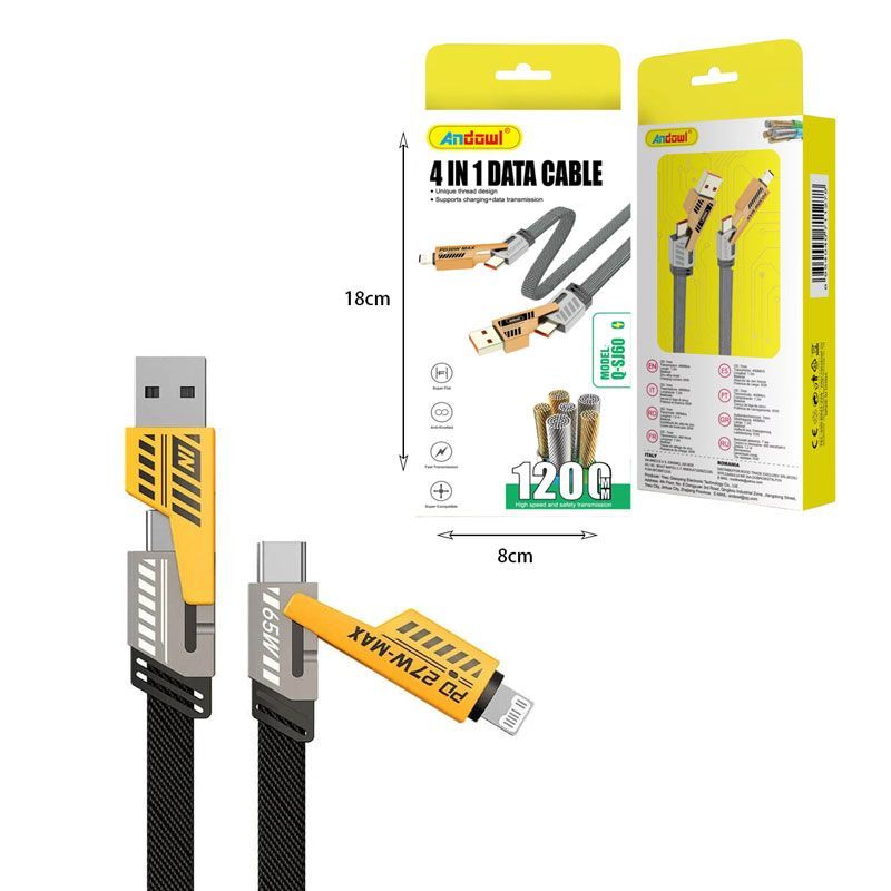 Andowl Καλώδιο Δεδομένων 4σε1 65W 120cm Q-SJ60 – 4in1 Data Cable