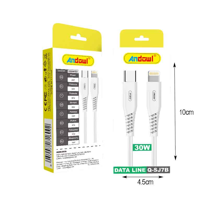 Andowl Καλώδιο δεδομένων Type-c σε Lightning 30W Q-SJ7B – Data Cable