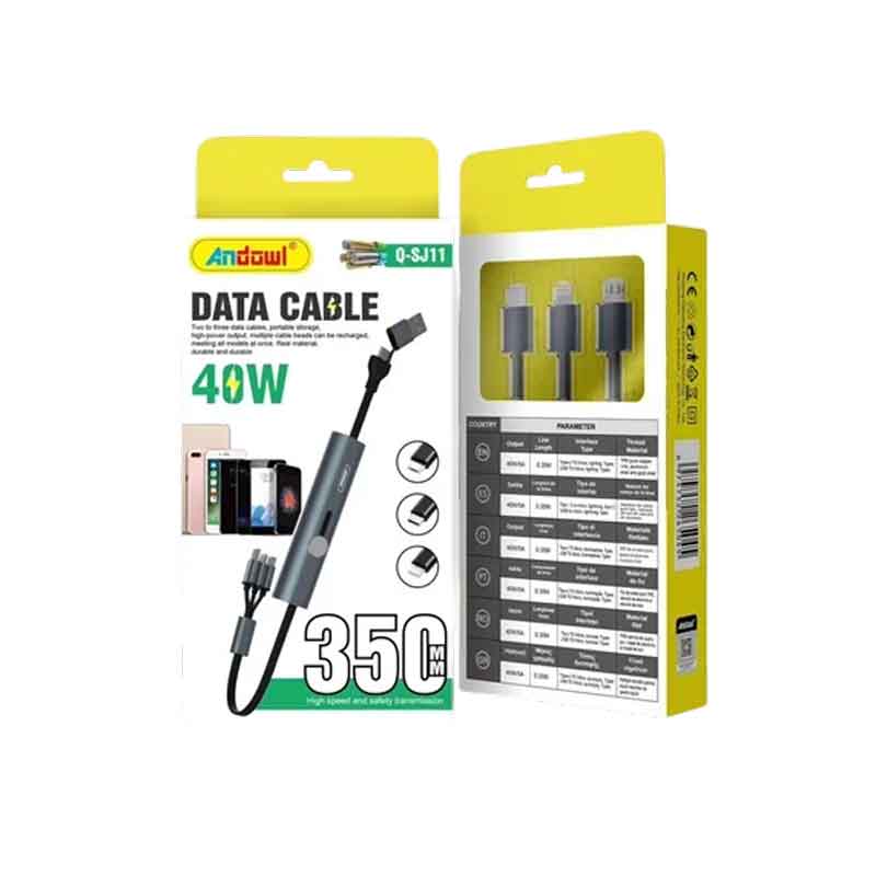 Καλώδιο φόρτισης και μεταφοράς δεδομένων 6 σε 1 με με ενσωματωμένο καλώδιο Micro / iOS / TypeC Andowl Q-SJ11