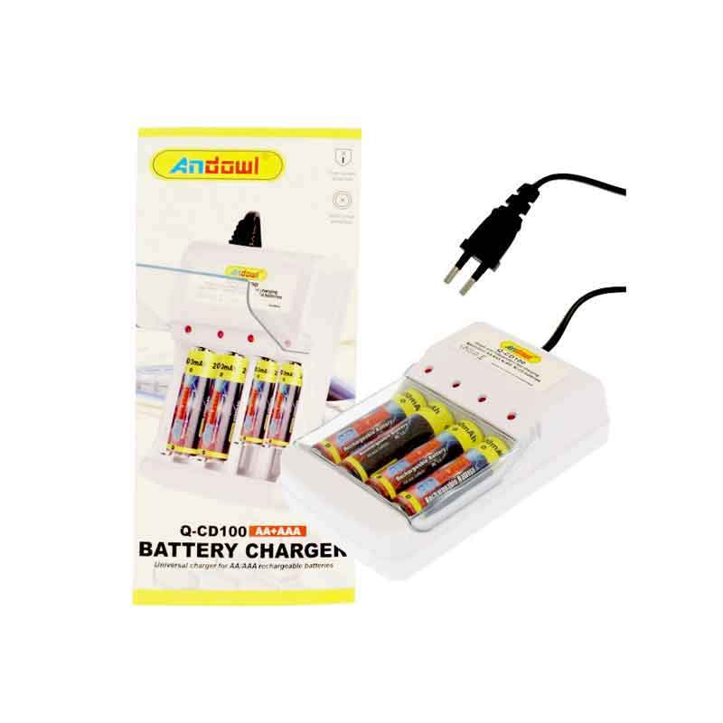 Andowl Φορτιστής 4 Μπαταριών Ni-MH Μεγέθους AA/AAA σε Λευκό χρώμα Q-CD100