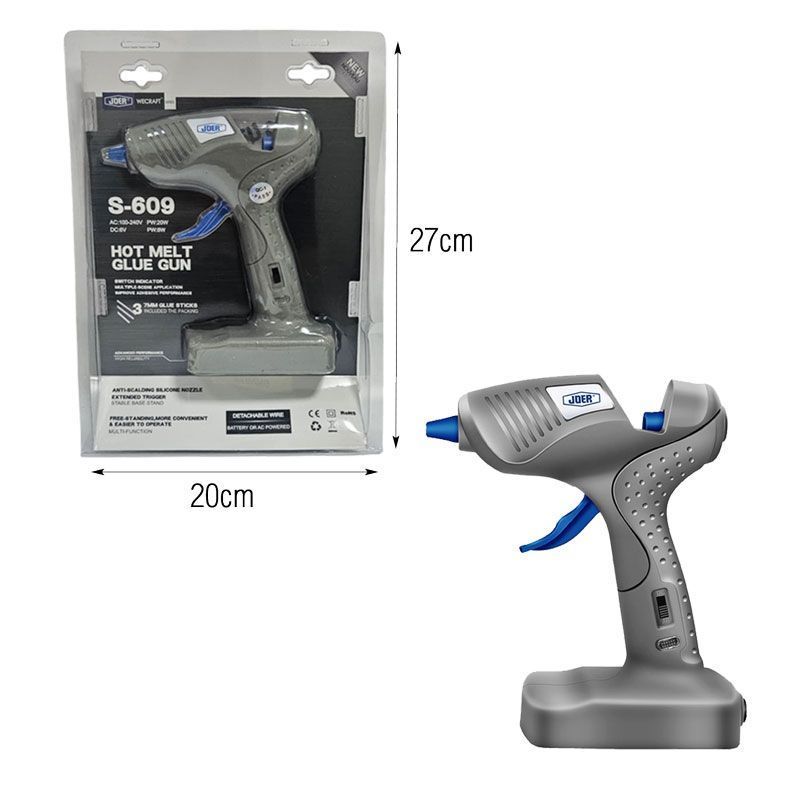 Το πιστόλι σιλικόνης Joer S-609 είναι ιδανικό εργαλείο για κάθε είδους κατασκευές, χειροτεχνίες και μικροεπισκευές. Διαθέτει ισχύ 20W και θερμαίνεται γρήγορα, προσφέροντας άμεση ετοιμότητα για χρήση. Η εργονομική λαβή με αντιολισθητική επένδυση εξασφαλίζει άνεση και σταθερότητα, ενώ η μύτη σιλικόνης είναι ανθεκτική στη θερμότητα για μέγιστη ασφάλεια. Η αποσπώμενη βάση παρέχει ευκολία και πρακτικότητα κατά τη διάρκεια της εργασίας. Στη συσκευασία περιλαμβάνονται 3 ράβδοι κόλλας διαμέτρου 7 mm, ώστε να ξεκινήσετε αμέσως τη χρήση του. Είναι ιδανικό τόσο για επαγγελματίες όσο και για ερασιτέχνες χρήστες.