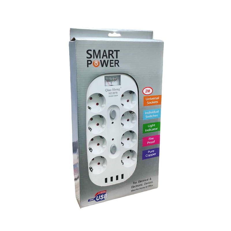 Qiao Sheng Πολύμπριζο 8 Θέσεων 10Α/250V-2500W 2m NO:3278 – Smart power 8 power socket
