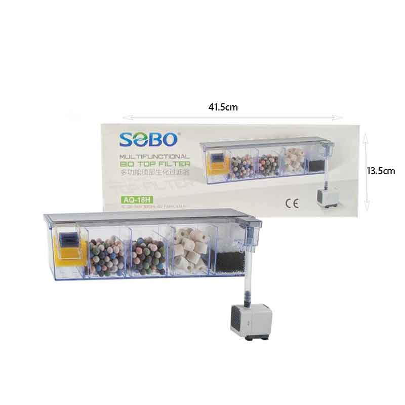 Το SOBO AQ‑18H είναι ένα κορυφαία τοποθετημένο φίλτρο (top-mount), κατάλληλο για ενυδρεία περίπου 4 ποδιών (~120 cm). Προσφέρει συνδυασμένη μηχανική και βιολογική καθαρότητα με πολλά πλεονεκτήματα: